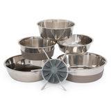 - Works with bowls that have a base at least 5" in diameter or more. The 4.5" solid base is constructed of a strong PP material, with flexible TPR wings that extend to 7.5" in diameter.